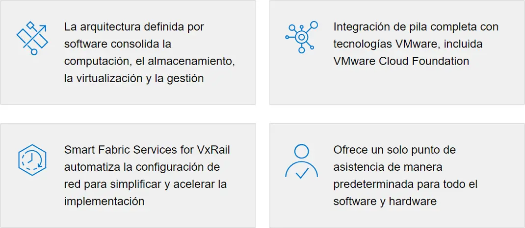 VxRail, diseñado para VMware con VMware y para potenciar VMware, ofrece la ruta más rápida y sencilla para transformar las operaciones y modernizar la infraestructura de los centros de datos. VxRail es la única plataforma de HCI para todas las cargas de trabajo y los casos de uso de VMware, como las aplicaciones de VDI y con densidad de computación; y para el alojamiento de aplicaciones tradicionales y modernas en una auténtica infraestructura de cloud híbrida.